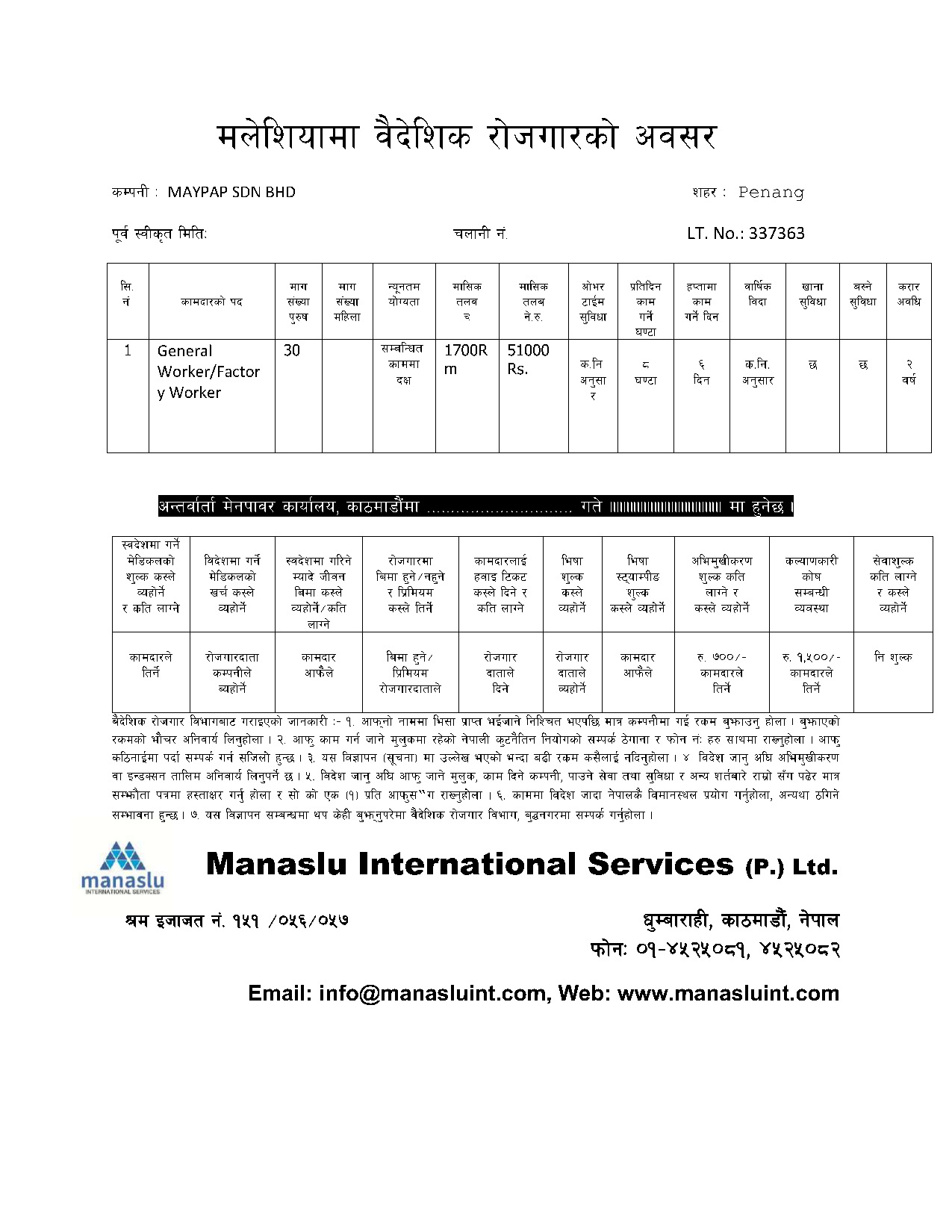 Job Designation: Factory Worker